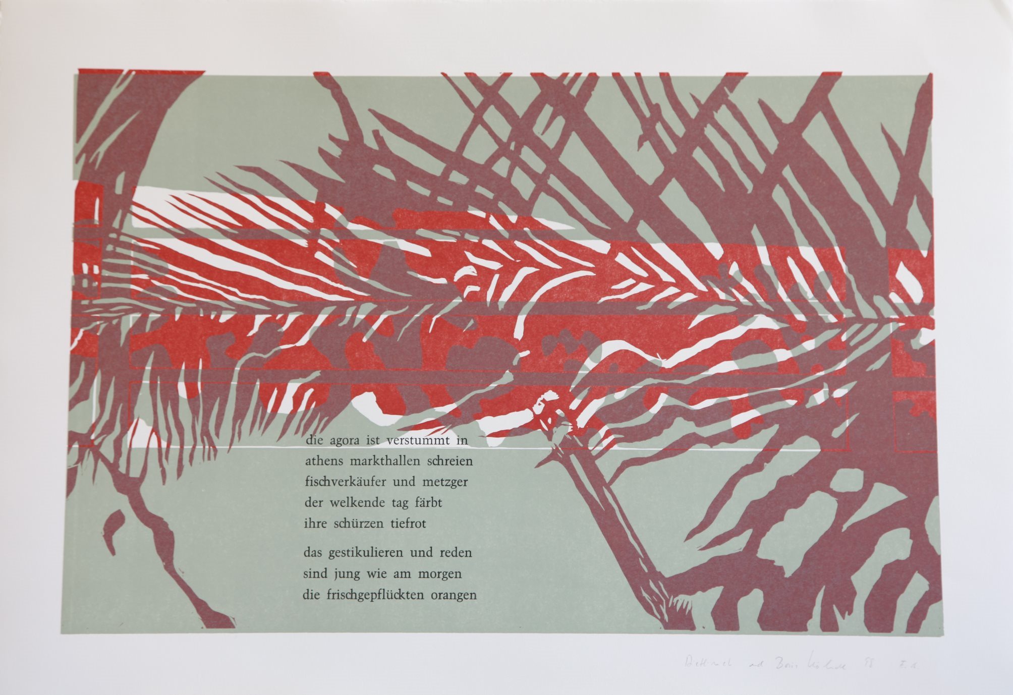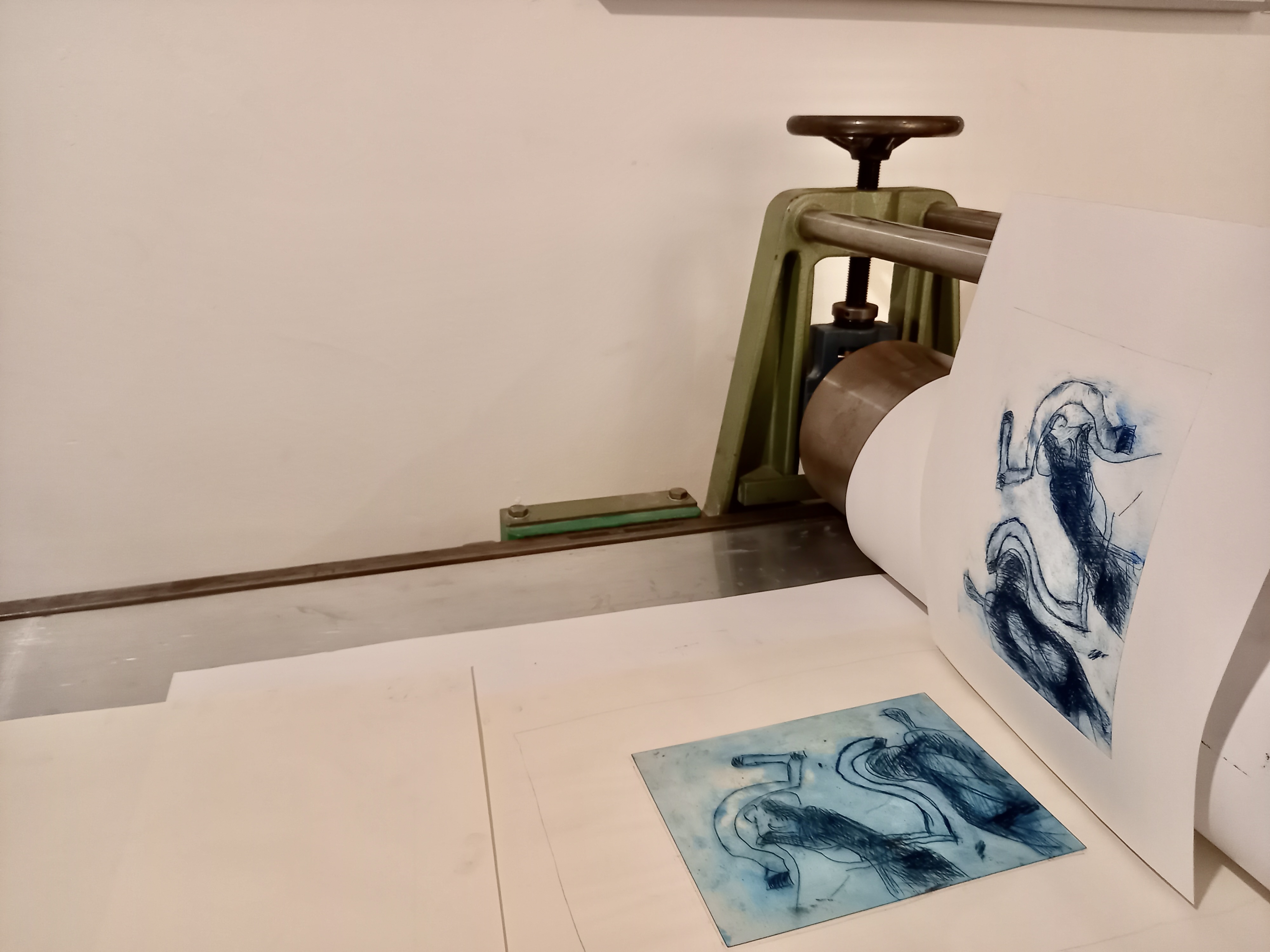 Wir zeigen Grafiken aus verschiedenen Schaffensperioden von Boris Köhncke, die er unter anderem auf der Tiefdruckpresse, die 2024 zu uns kam, gedruckt hat. Auf diese Weise inspirieren seine großformatigen Mehrfarbdrucke die Workshopteilnehmenden, die auf dieser Presse arbeiten. Wir freuen uns, dass diese Presse die Druckmöglichkeiten in unserer offenen Werkstatt erweitert. Und die Presse freut sich, noch einmal von den vertrauten Drucken umringt zu sein. Feiern Sie mit uns das Weitergeben von Technik und Wissen und kommen Sie mit Dietlind Köhncke ins Gespräch. Lassen Sie sich von den feinen Mehrfarbdrucken beeindrucken und stoßen Sie mit uns zur Midissage am 12.03.25 auf die neue Presse an.