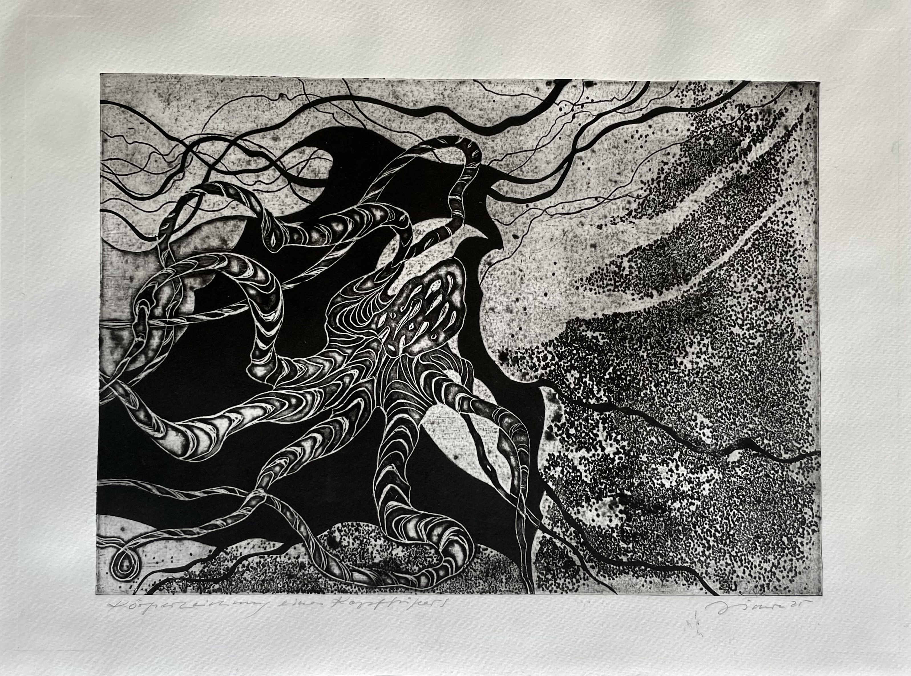 Das diesjährige Druckfestival FESTE-DRUCKEN des SPEICHER_Leute e.V. fand vom 26.8.-2.9 in Vitte auf Hiddensee statt. Drucker _innen im weitesten Sinne habe sich eine Woche auf der schmalen Insel breit gemacht. Die experimentelle Kreuzbestäubung erprobte auch Techniken, bei denen Materialien von der Insel verwendet wurden und Ideen aus dem Begleitprogramm einflossen: mit Gefundenem drucken, Pigmente aus Muscheln reiben oder Windflüchter verewigen. Die Performance „Der kollektive Druckkörper“ bewegte sich wortwörtlich im langsamen Drucktempo durch den Ort zum Strand.